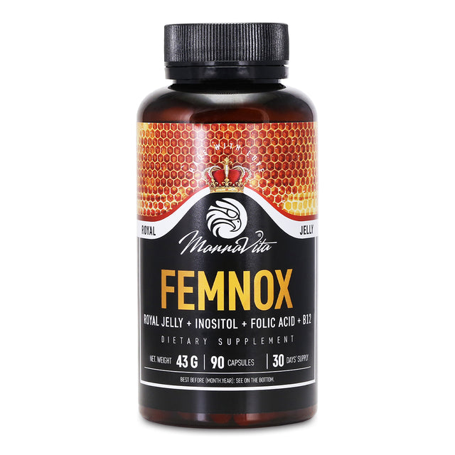 Un complejo que contiene jalea real altamente concentrada, inositol, ácido fólico, y vitamina B12 natural. Femnox apoya al cuerpo femenino en lograr el equilibrio. Se recomienda para mejorar la fertilidad, equilibrar el estrógeno / progesterona niveles, apoyo PCOS y terapia de endometriosis, y aliviando síntomas menopáusicos.